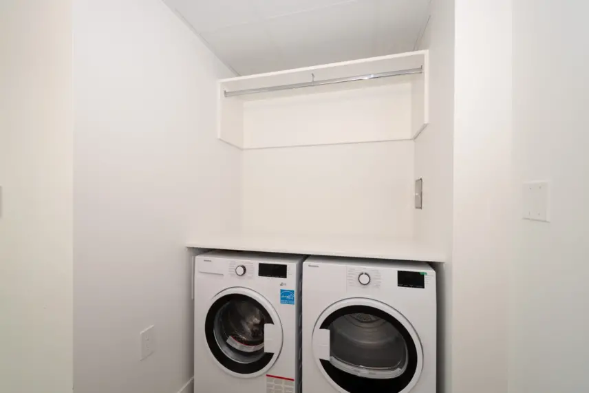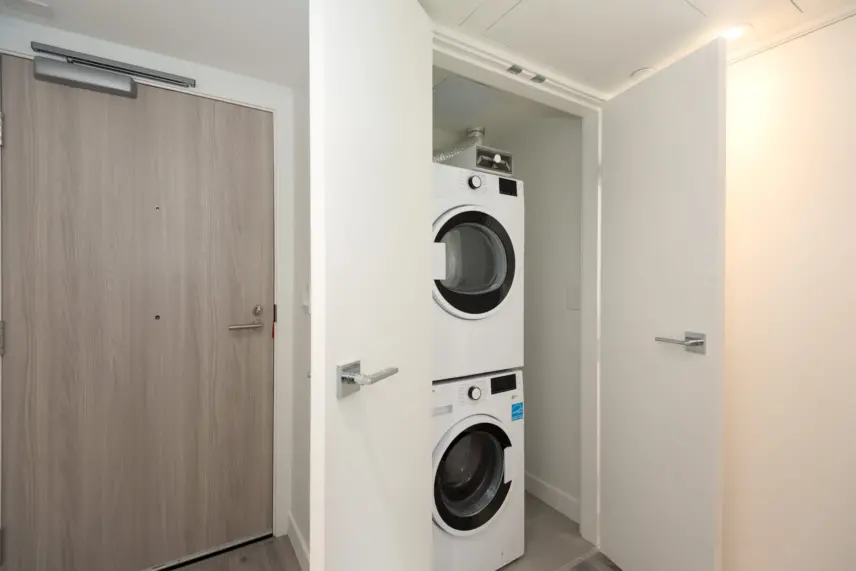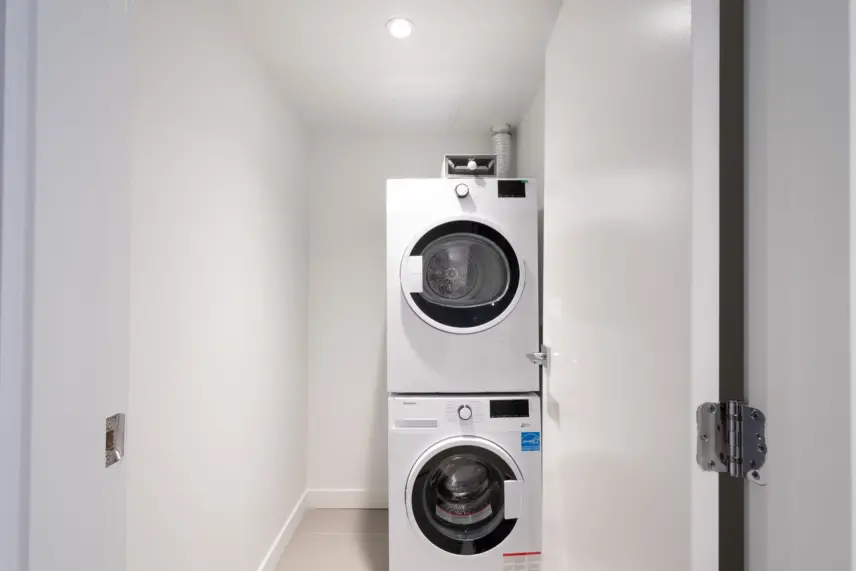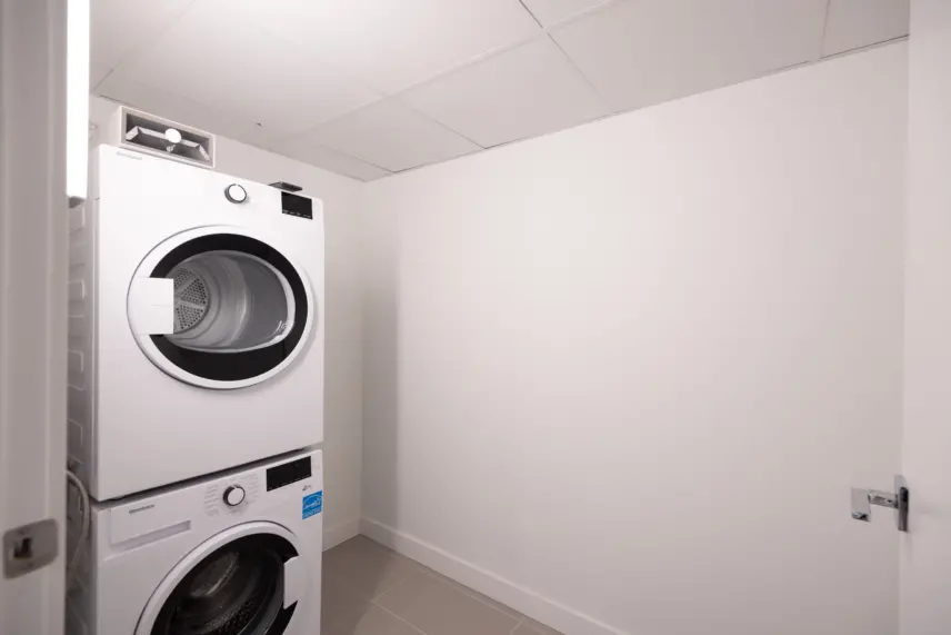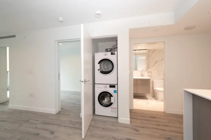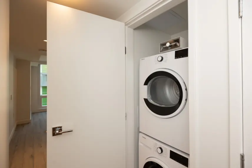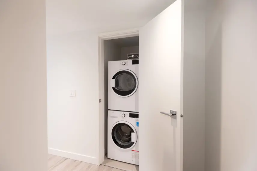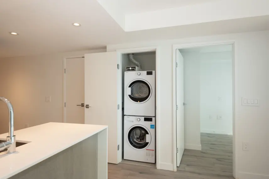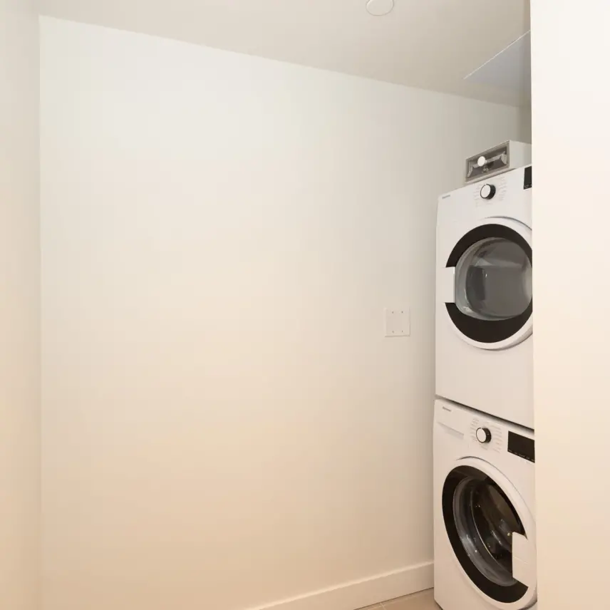 - In-Suite Washer/Dryer, Integrated Miele Appliances and Gas Stovetops