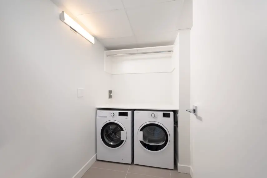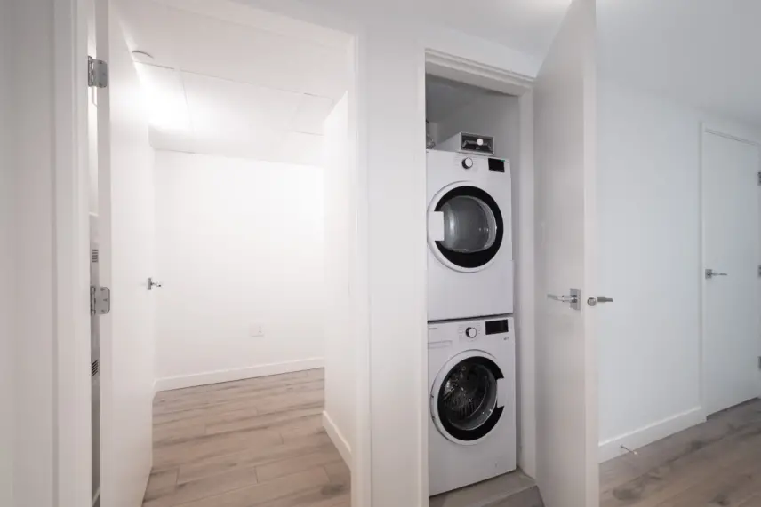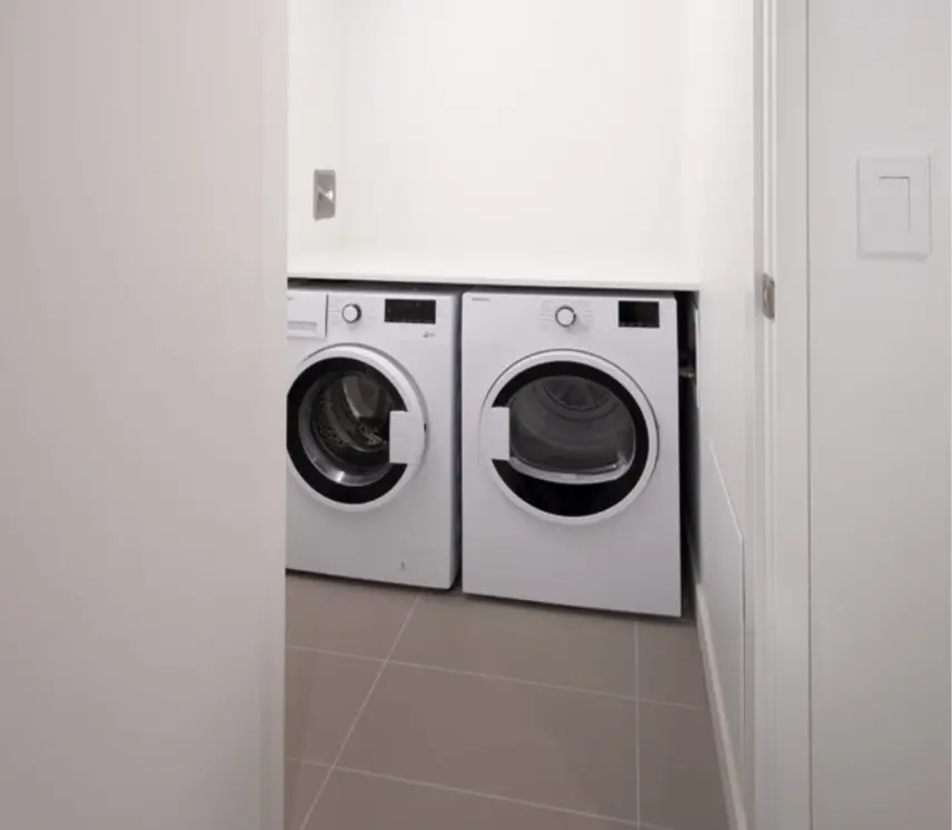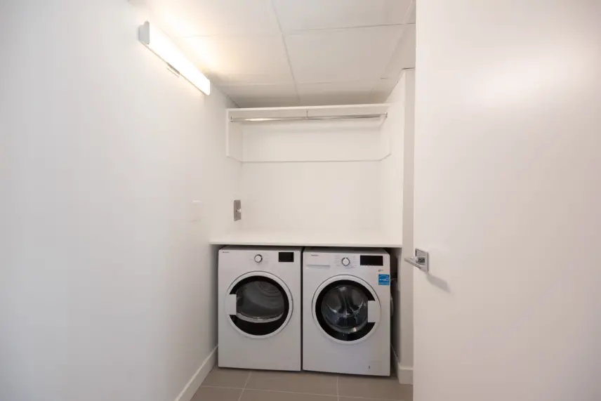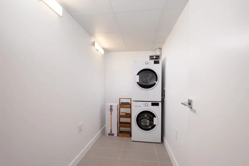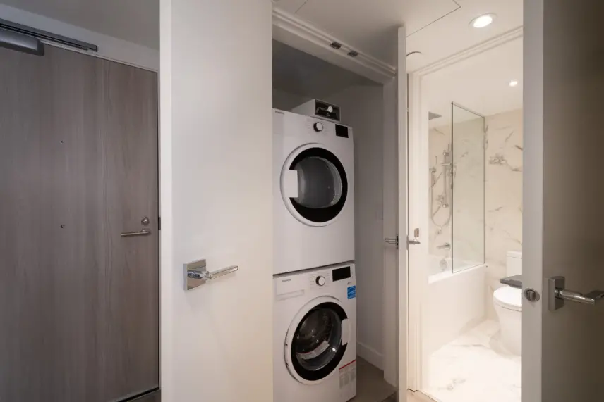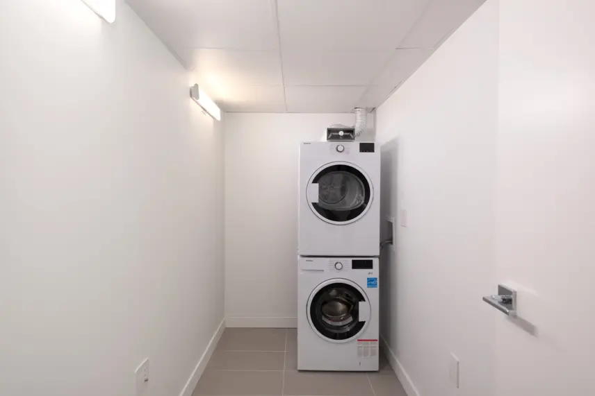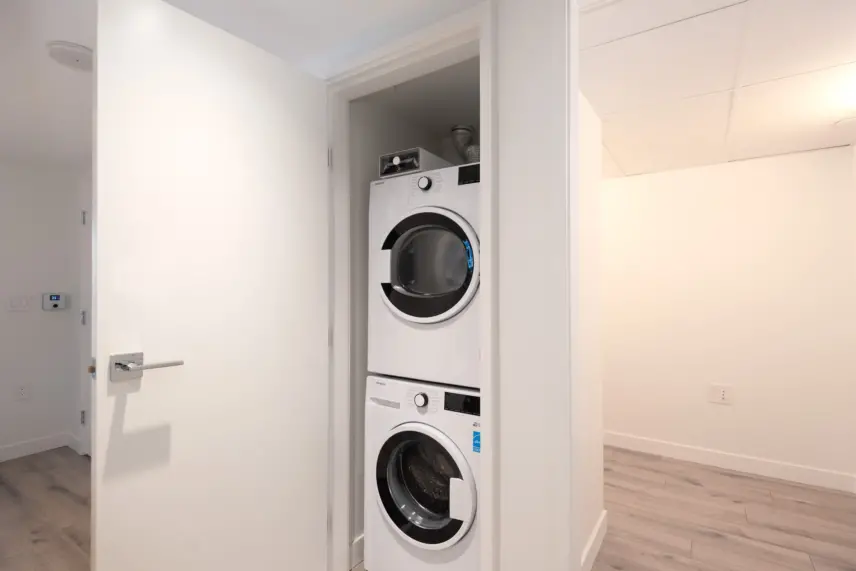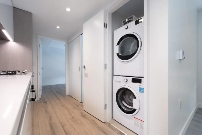- In-Suite Washer/Dryer, Integrated Miele Appliances and Gas Stovetops