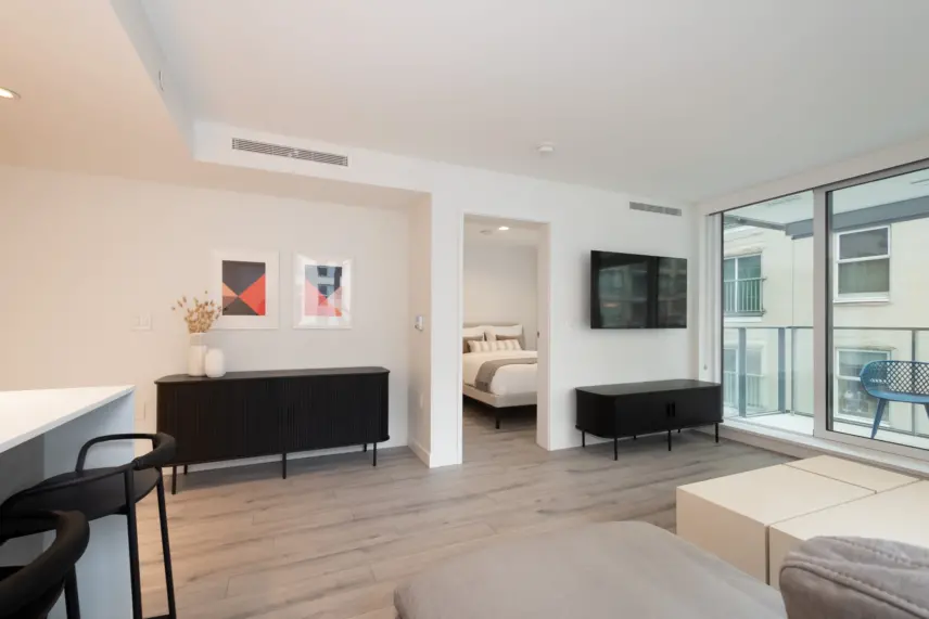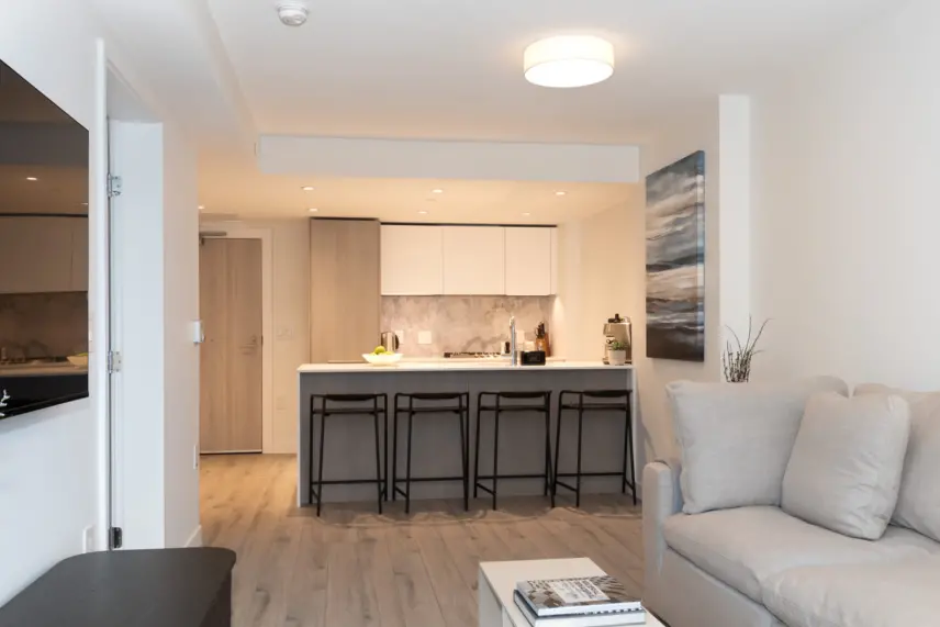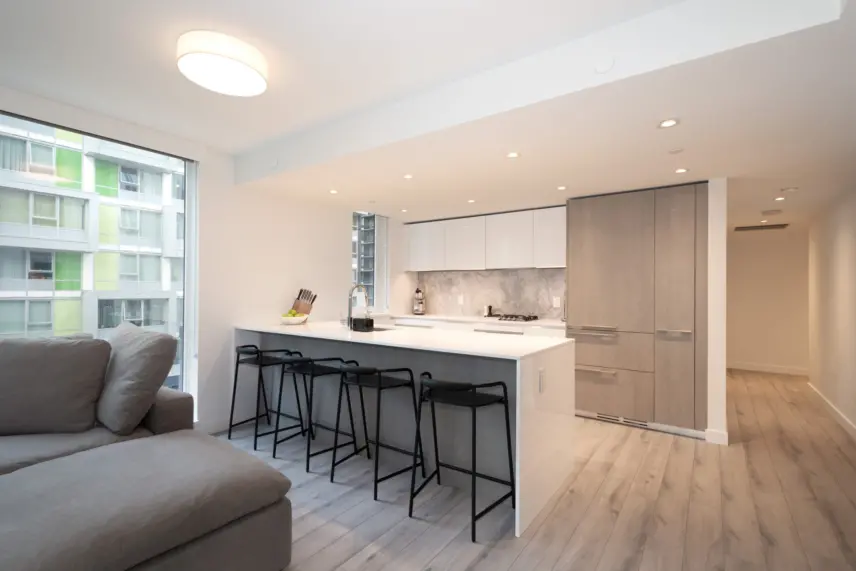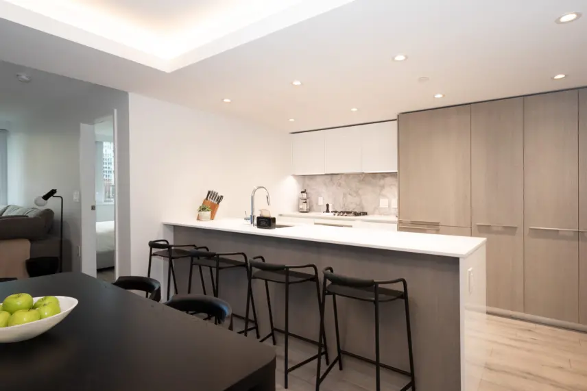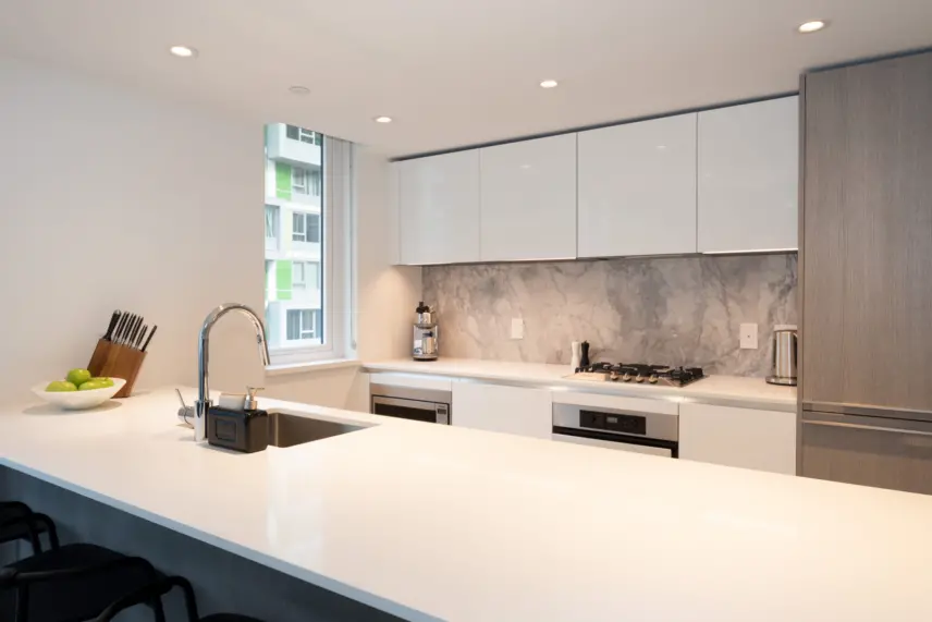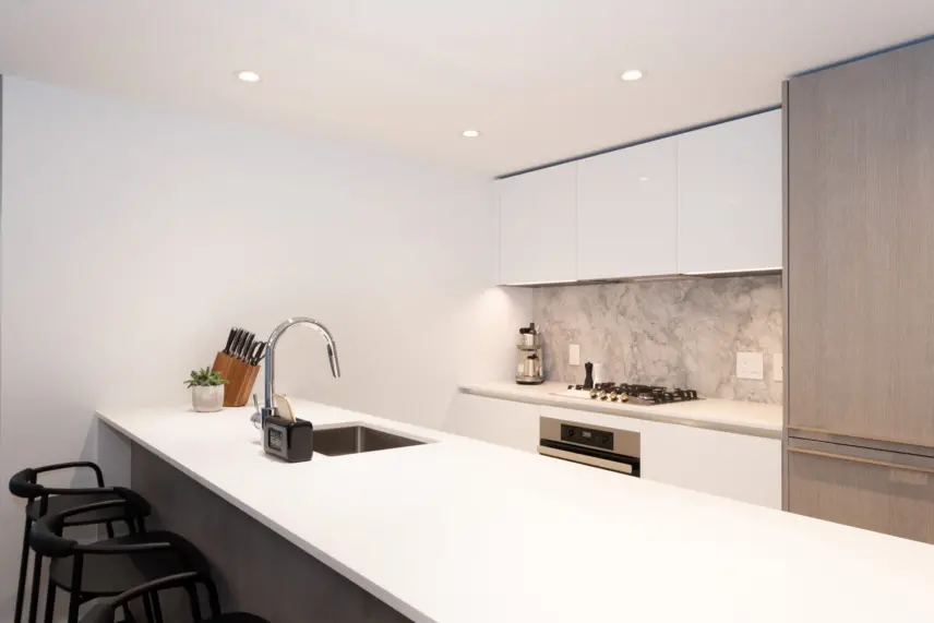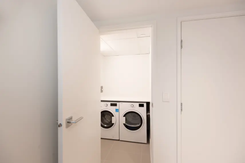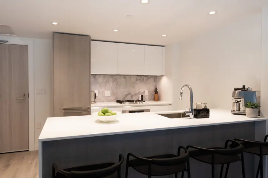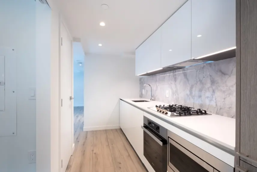 - In-Suite Washer/Dryer, Integrated Miele Appliances and Gas Stovetops