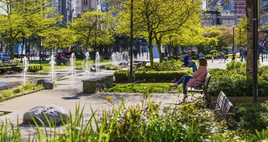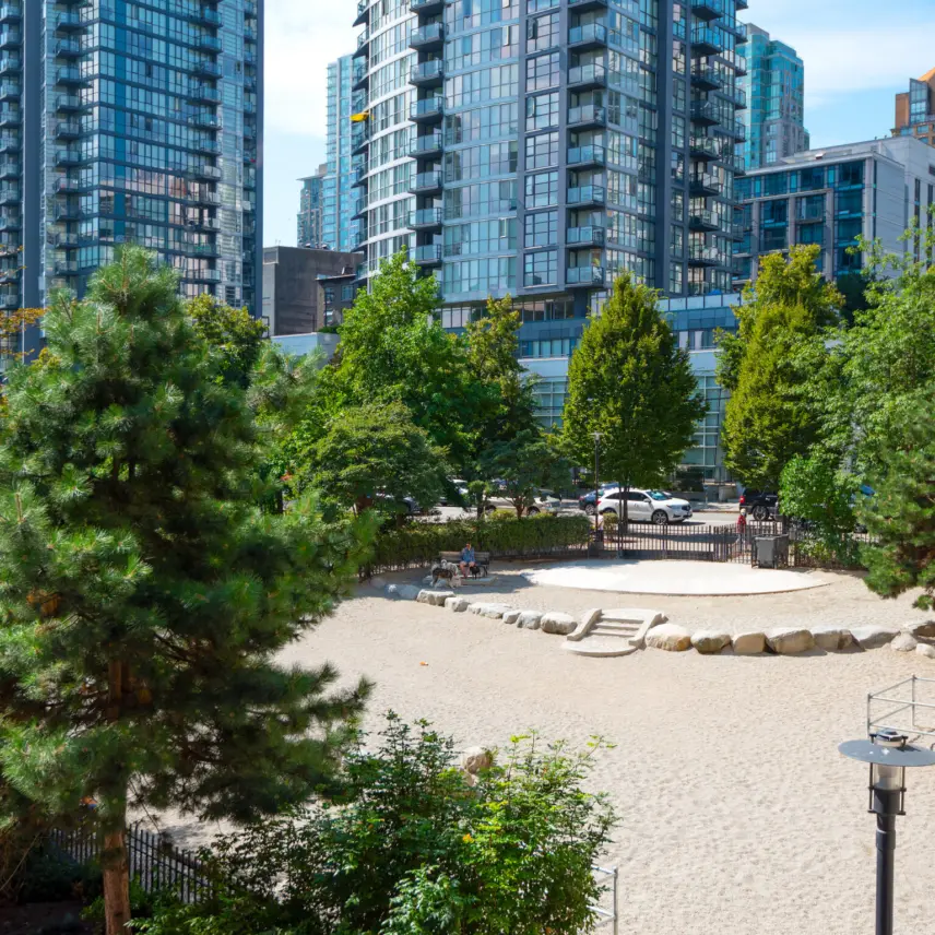 - Outdoor Terrace Overlooking Emery Barnes, a 2-acre Park with Walking Paths and a Playground