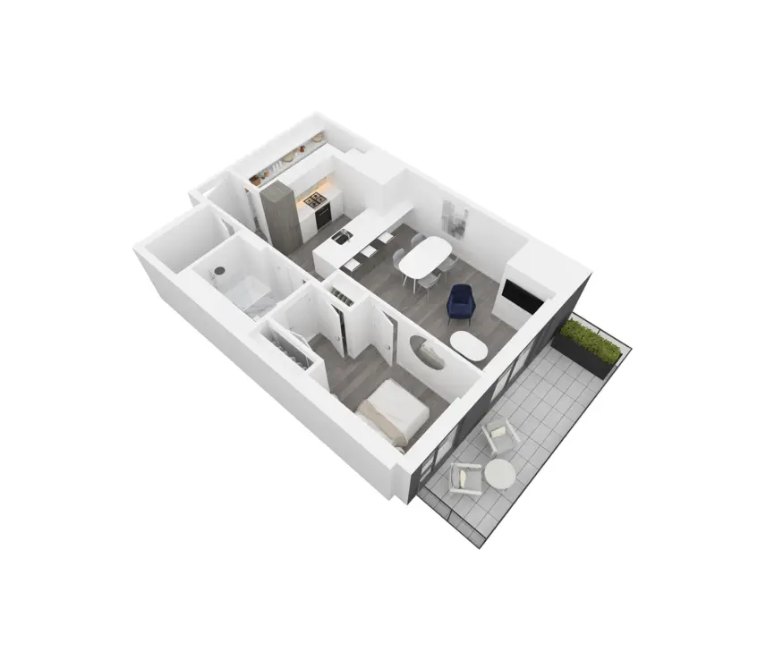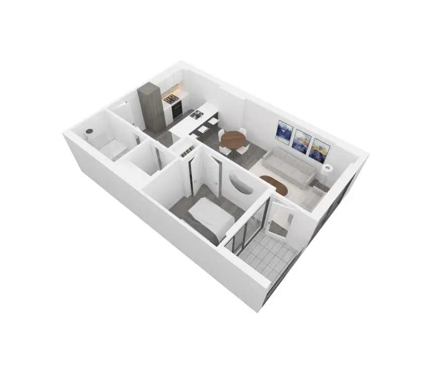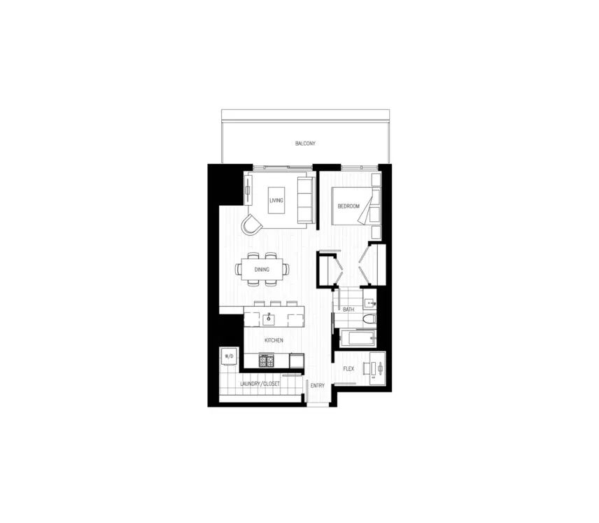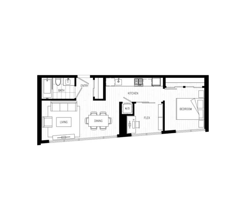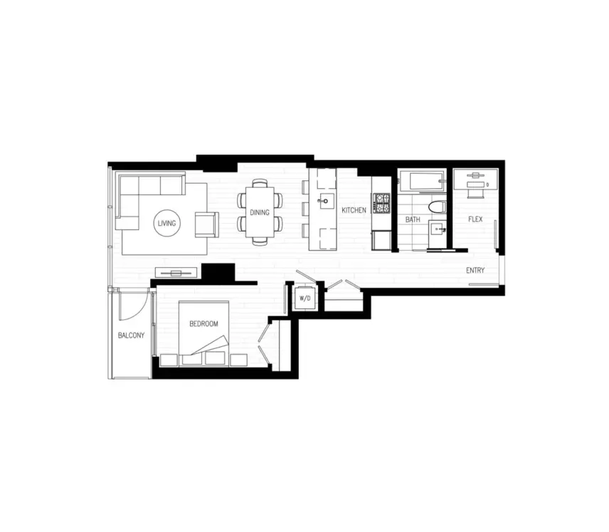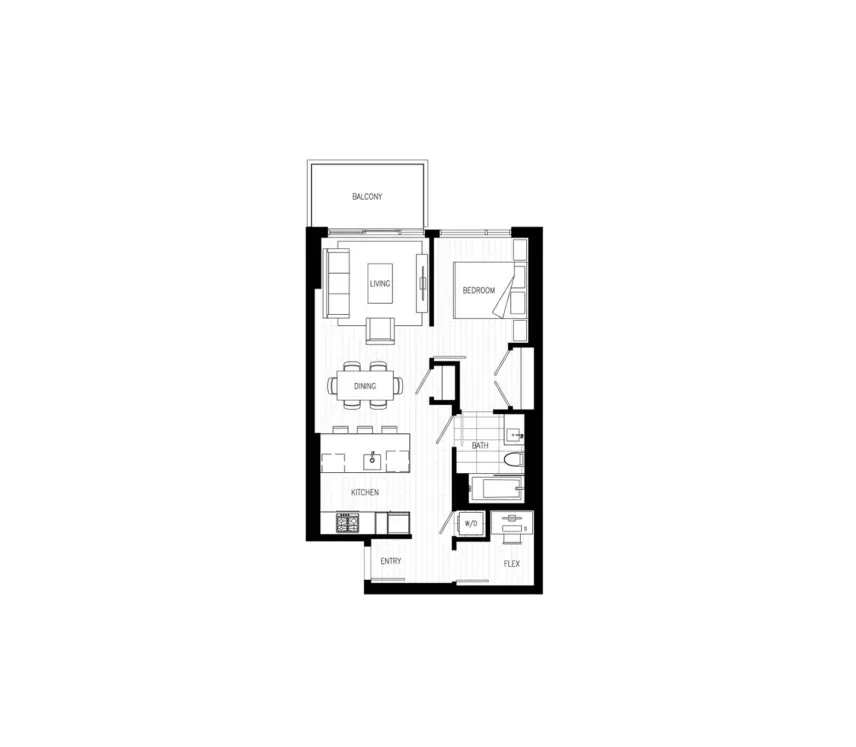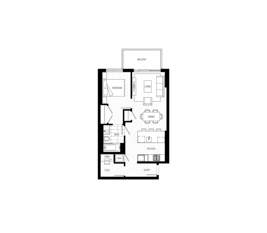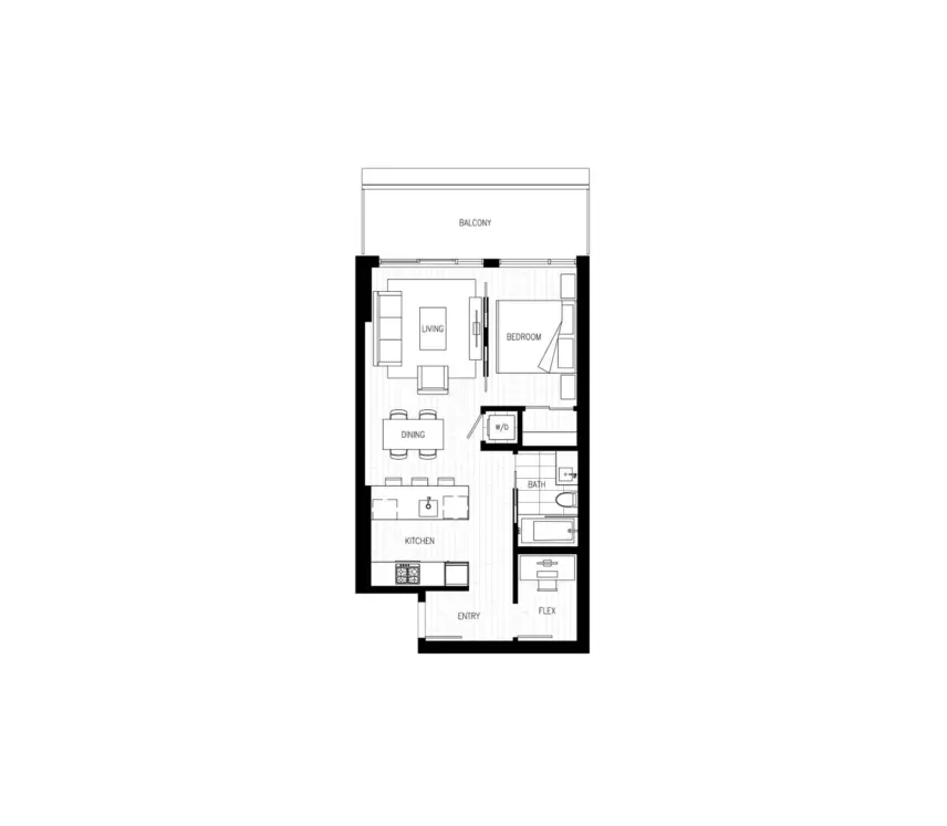 | Plan O | 1 Bed + Flex | No | 630 | Rented |