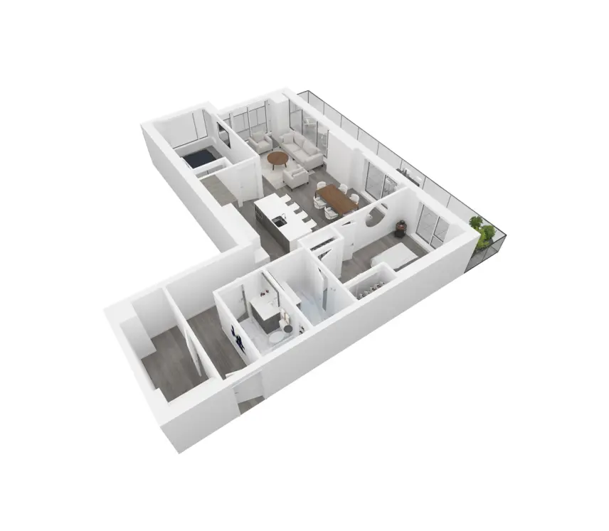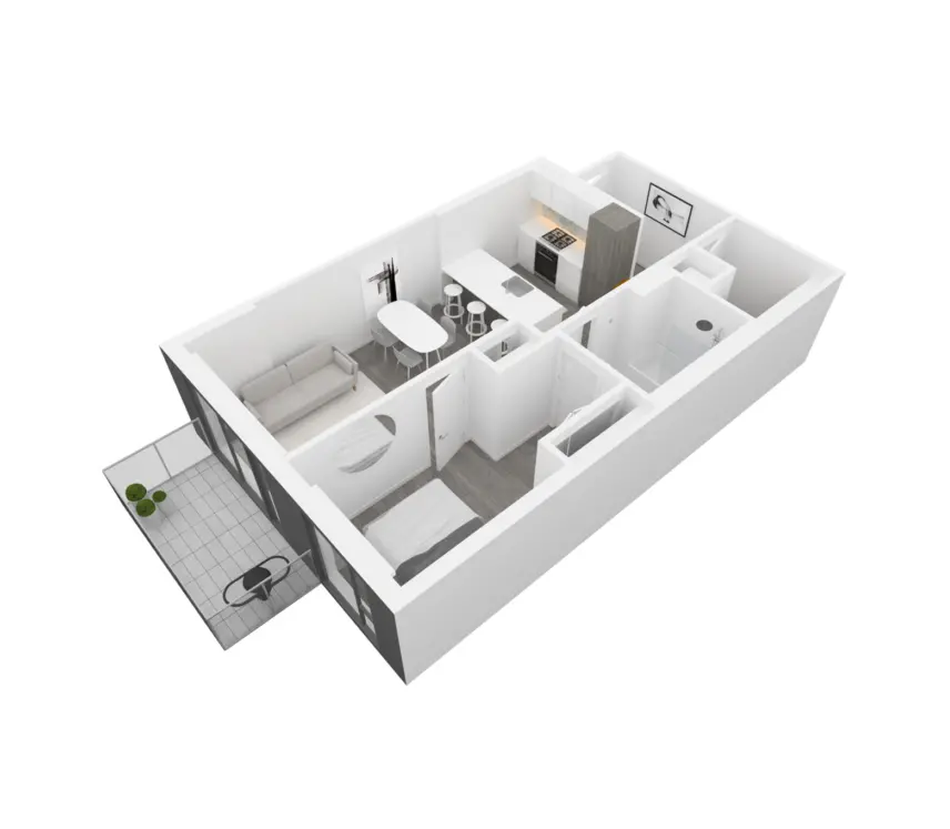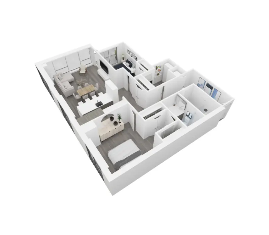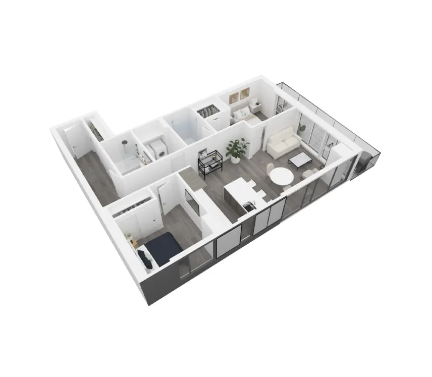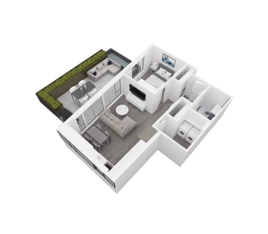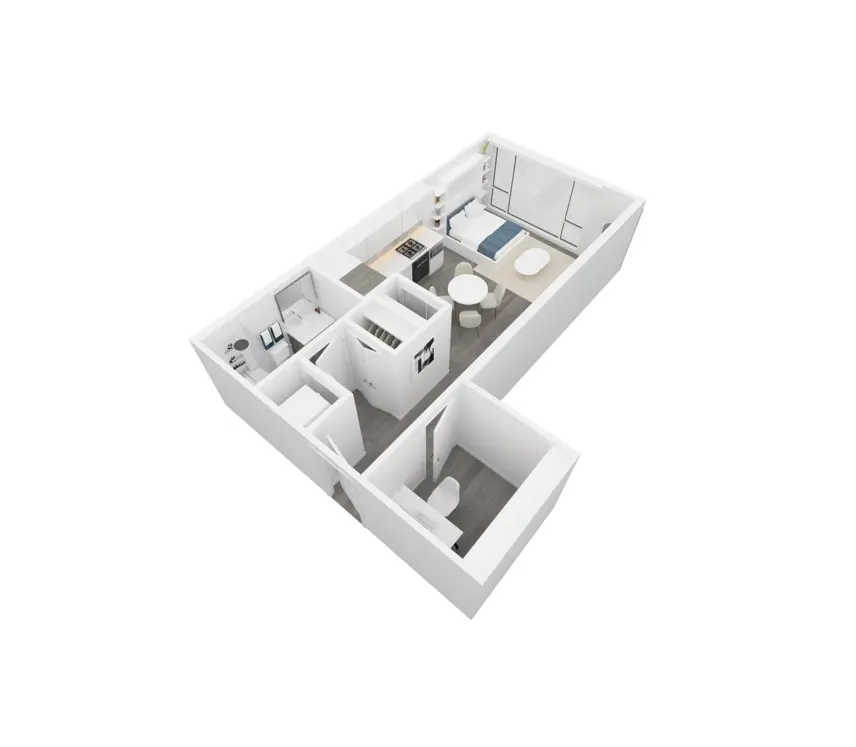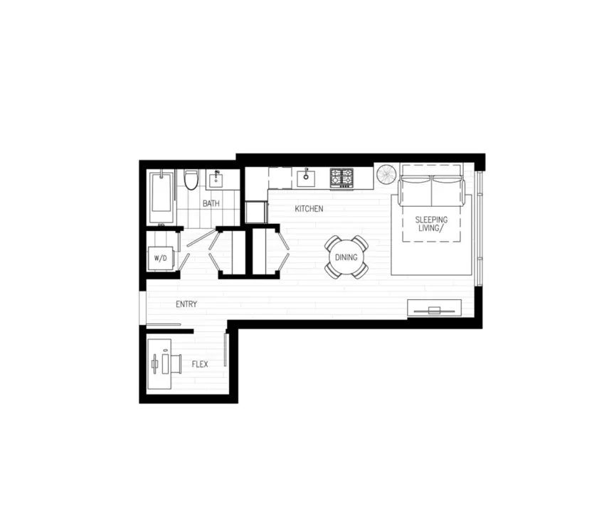| Plan L | 1 Bed + Flex | No | 600 | Rented |