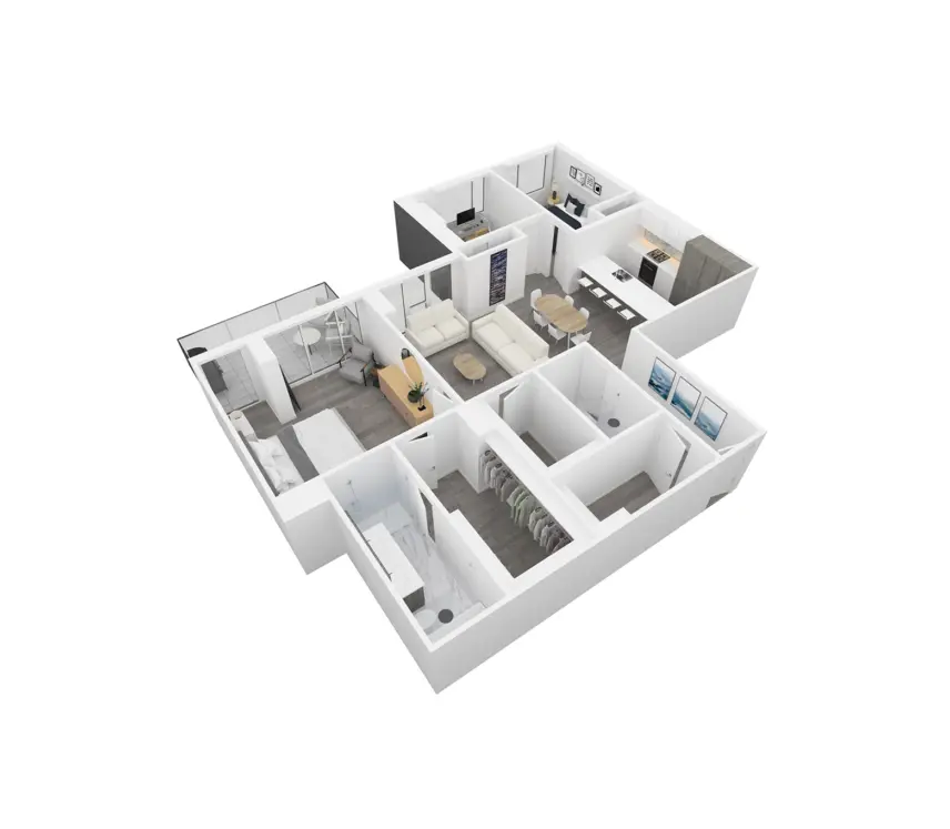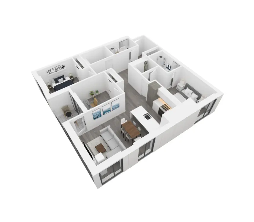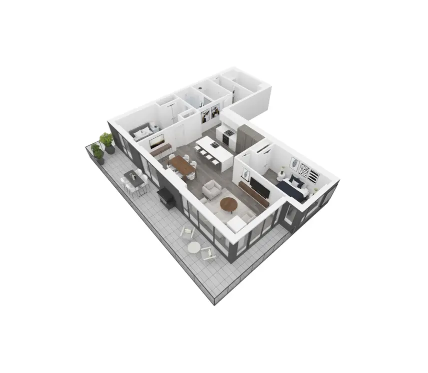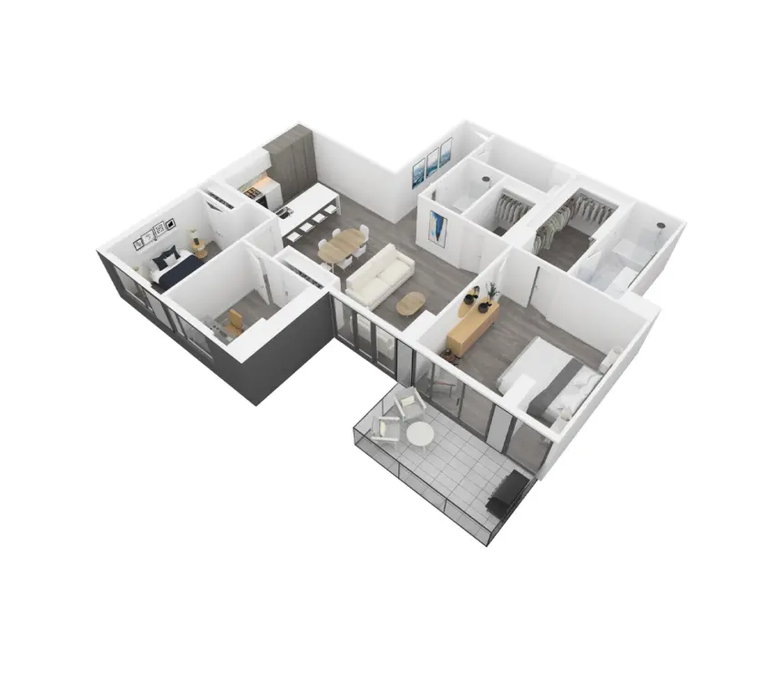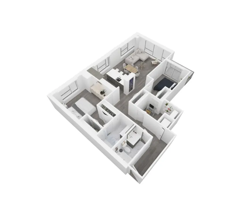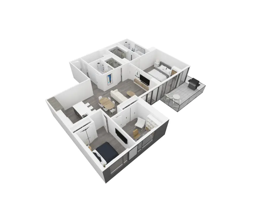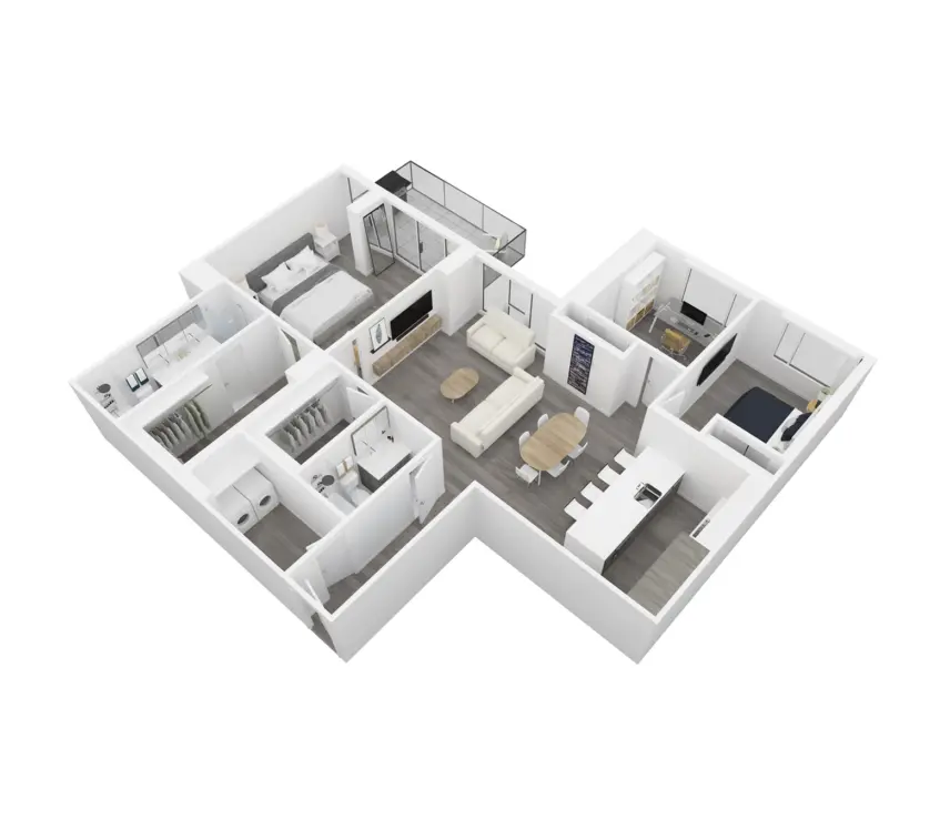 | Plan L | 1 Bed + Flex | No | 600 | Rented |