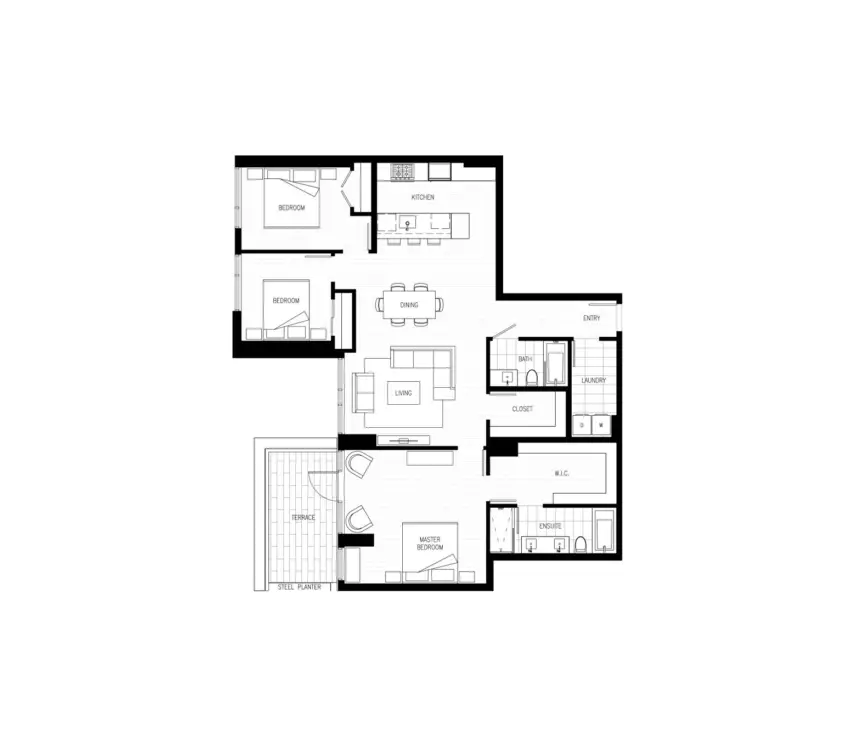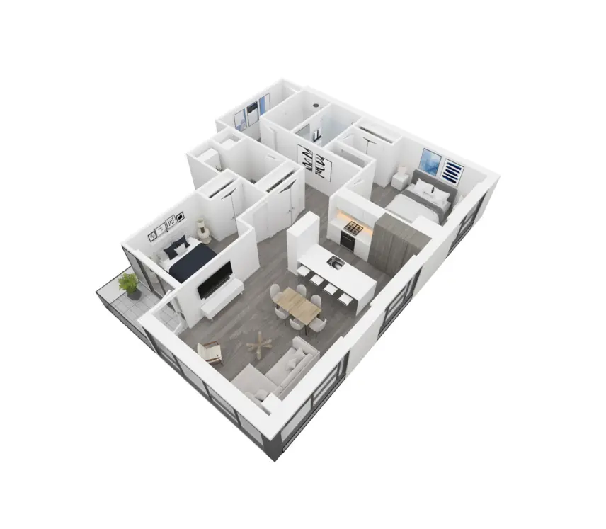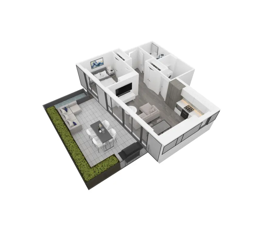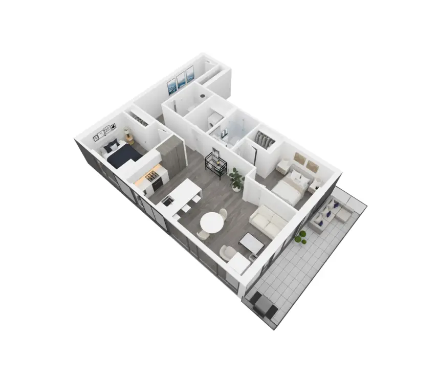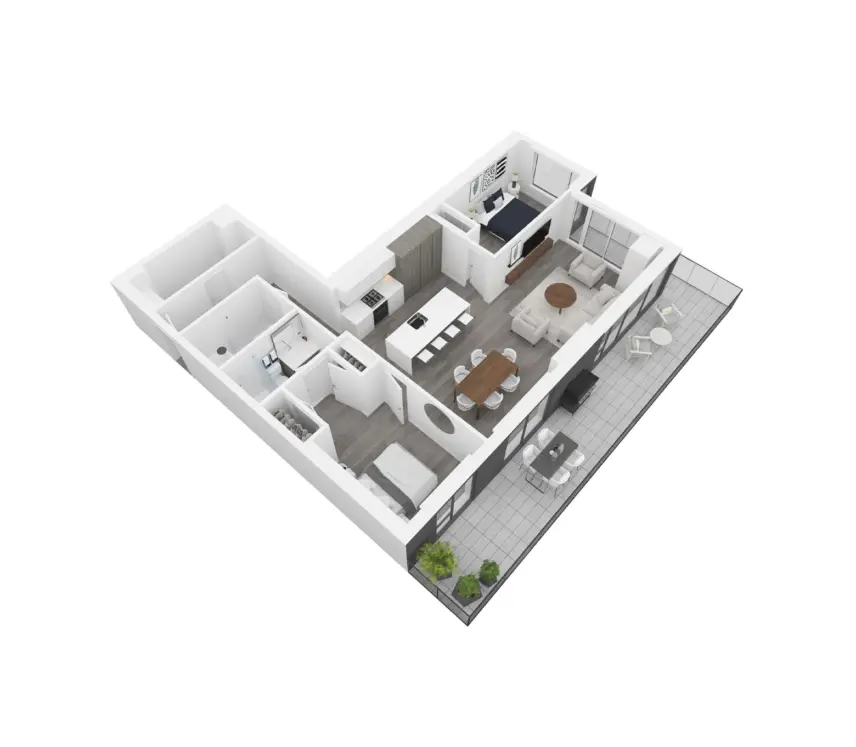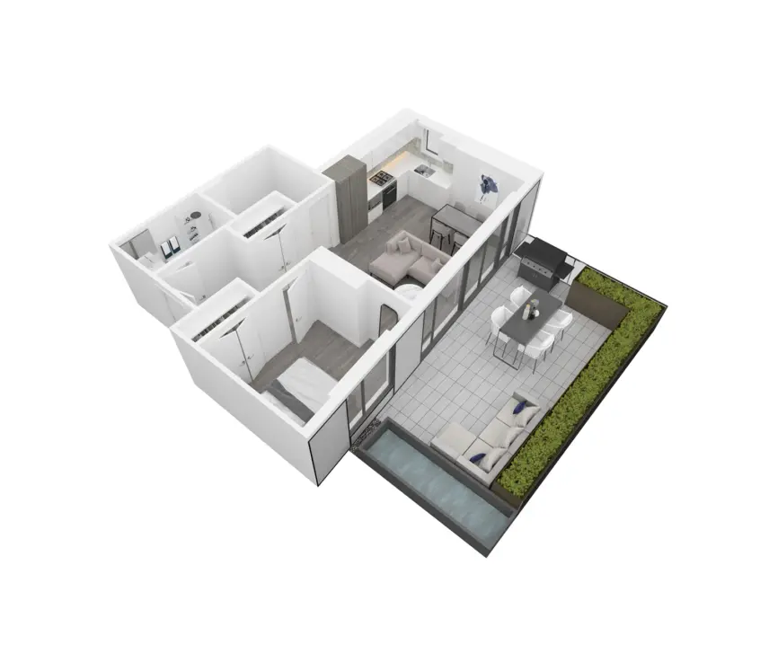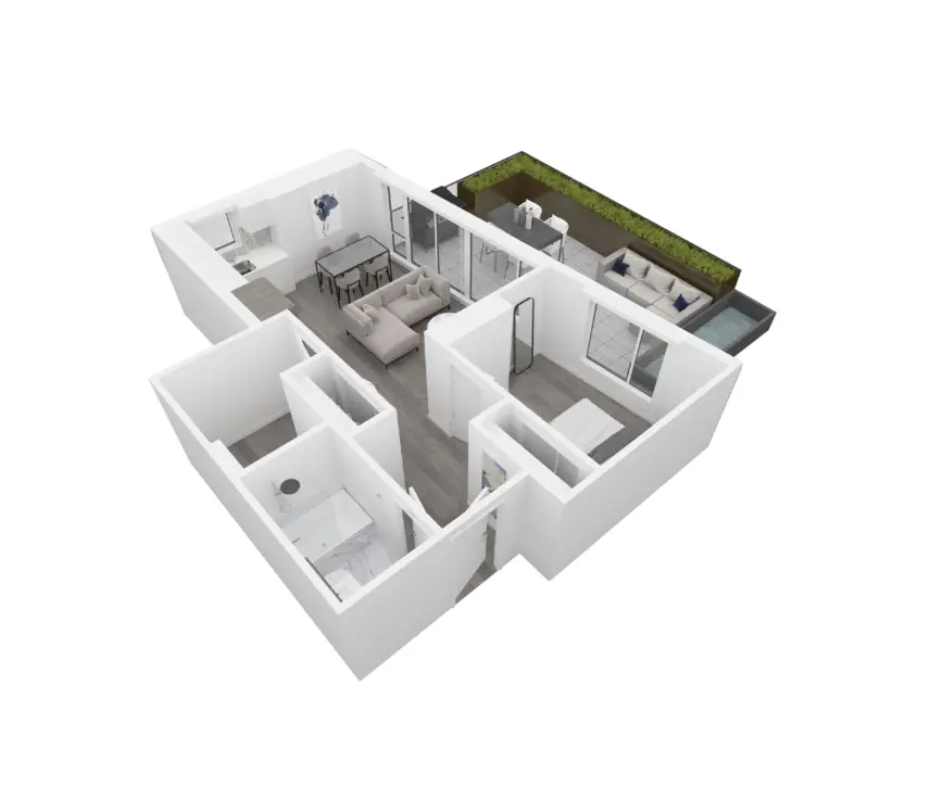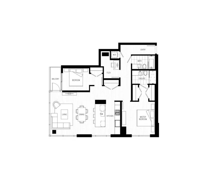 | Plan H | 2 Bed + Flex | No | 1200 | Rented |
