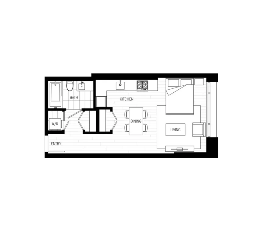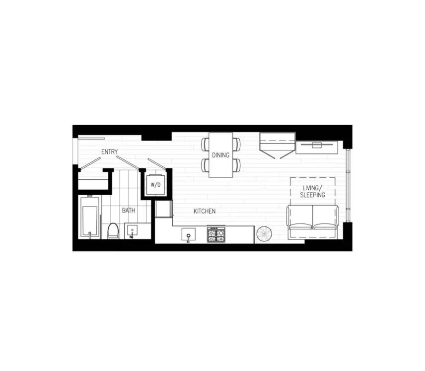 | Plan S | Studio + Flex | No | 550 | Rented |