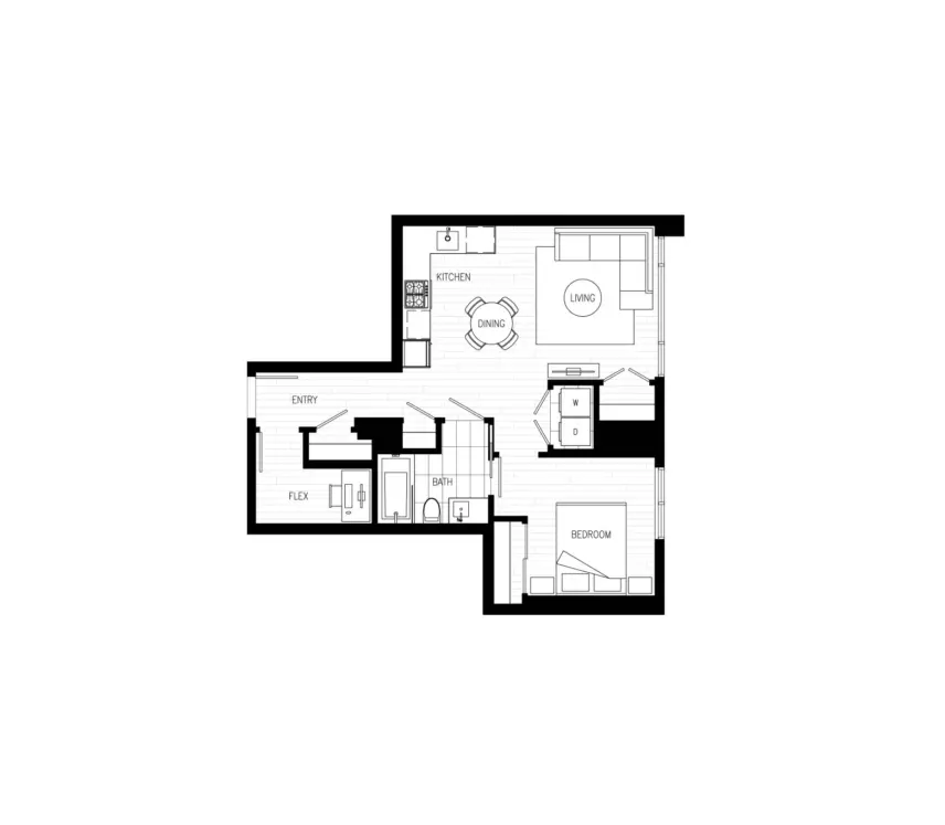 | Plan N | 1 Bed + Flex | No | 630 | Available |